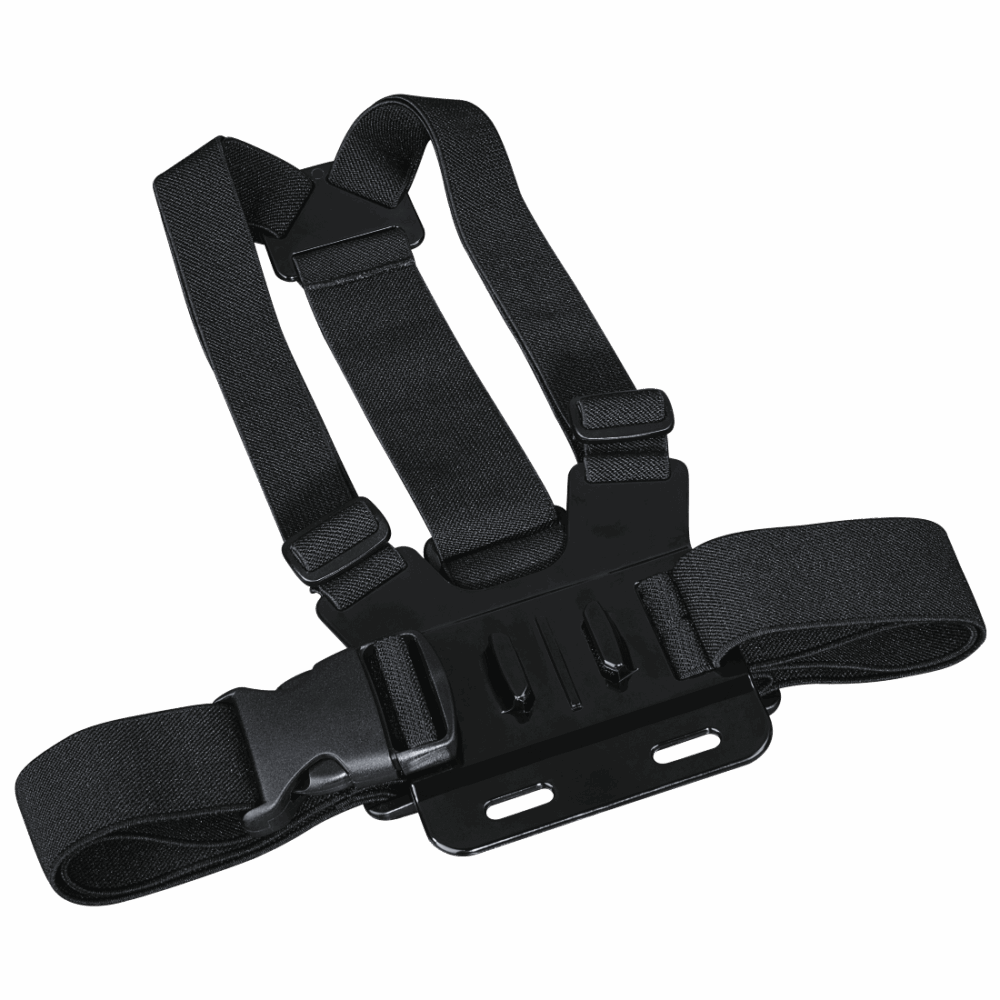 Dostępne na wynajem mocowanie na klatkę piersiową do kamer sportowych. Pozwala na bezpieczne i wygodne umieszczenie kamery na klatce piersiowej podczas aktywności sportowej.